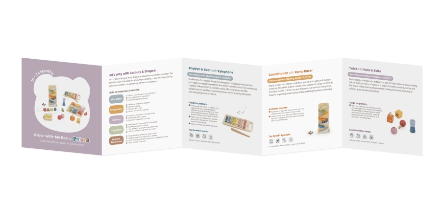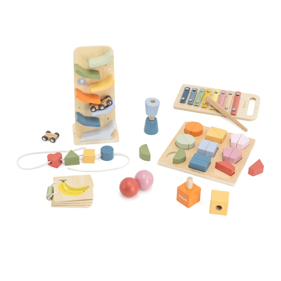 Your child is making so many discoveries about the real world at this stage. This box offers new challenges in rhythm, finger dexterity, colour and shape sorting and cause and effect, as well as early introduction to physics.