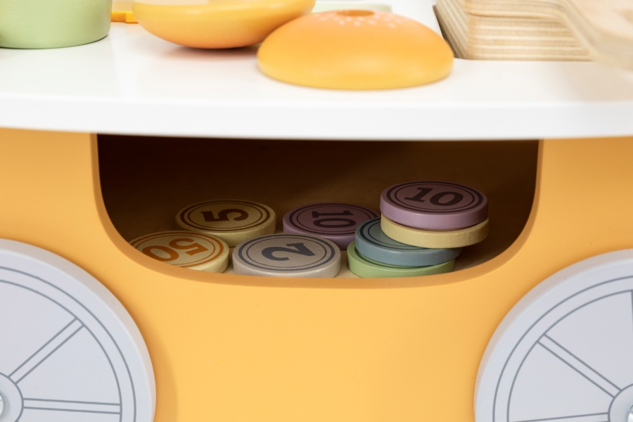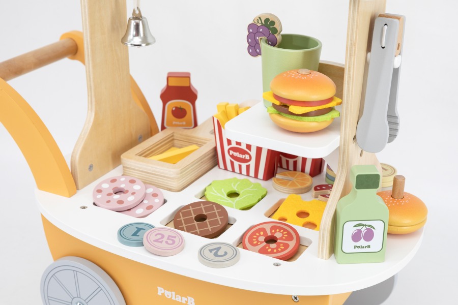 This colorful mini burger shop invites kids to fry crispy fries, build tasty burgers, and serve drinks for a delightful, hands-on role play experience.