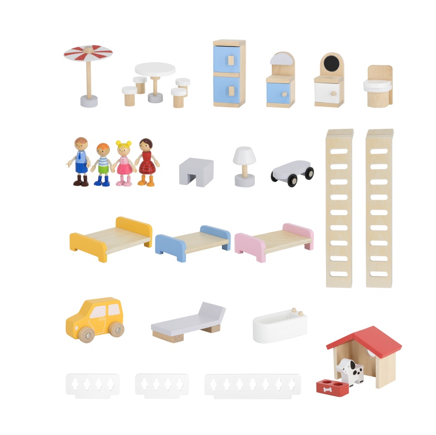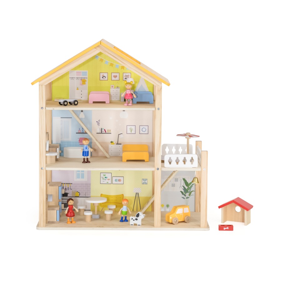 This beautifully furnished dollhouse is perfect for imaginative playtime and provides hours of fun for little ones. Playing with dollhouses helps improve social skills, develop and train imagination  and creative thinking.