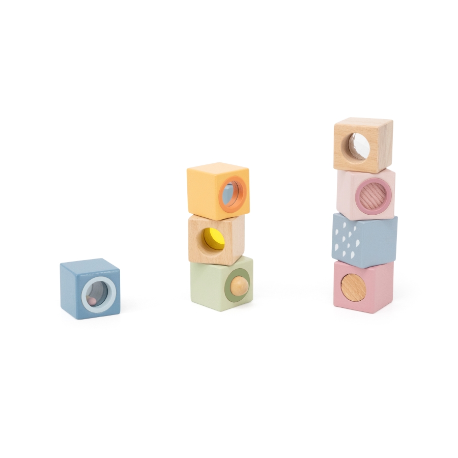 Unlock endless fun and exploration with these 8-piece sensory wooden blocks! Designed to stimulate touch, sight, and sound, each block features unique textures, mirrors, or sounds, perfect for little hands. Safe, durable, and beautifully designed, they promote sensory development, fine motor skills, and imaginative play.
